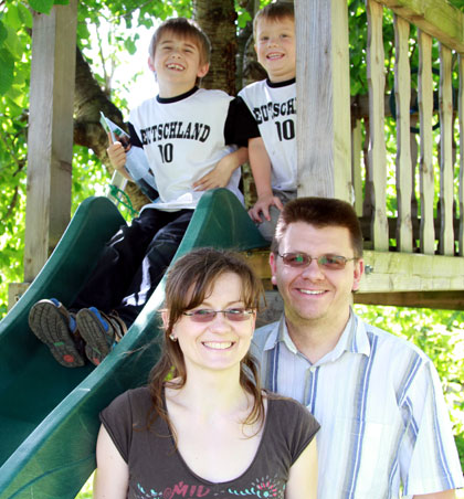 Richtige Magdeburg Fans sind auch die Gärtners. Jörg (36), Anke (33), Paul (7) und Tom (4) halten sich – passend zu ihrem Namen – am liebsten in ihrem Kleingarten auf. Dass die Familie heute in Magdeburg lebt, war lange nicht sicher, denn der studierte Bauingenieur musste zusehen, wie zwei Drittel seiner Kommilitonen nach dem Studium der Landeshauptstadt entflohen. Auch seine Frau Anke, gelernte Bankkauffrau, haderte lange mit ihrem Schicksal. Ihre vermeintlich sichere Ausbildung bei einer Bank entpuppte sich als Fehlentscheidung, denn ihr Arbeitgeber musste der starken Konkurrenz auf dem Markt Tribut zollen. Jörg Gärtner erinnert sich: „Die Chancen und Stellen, wegzugehen, waren massig vorhanden.“
