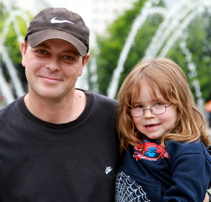 Doch dann geht alles ganz schnell: 2008 trennt sich das Ehepaar – die privaten Probleme scheinen nicht mehr überbrückbar. Die beiden großen Töchter, die heute 14 und 15 Jahre sind, kommen zu einer Pflegefamilie, die sechsjährige Leonie bleibt letztendlich bei dem nun alleinerziehenden Vater. „Am Anfang war das schon komisch, aber man gewöhnt sich an alles. Heute verstehen wir uns blind, haben einen eingespielten Tagesablauf.“ Ein bisschen wehmütig denkt Thomas Clausen an seine beiden großen Töchter, wenngleich er weiß, dass es ihnen bei der Pflegefamilie auf dem Bauernhof sehr gut geht. „Wir haben regelmäßig Kontakt, aber als Alleinerziehender mit drei Töchtern – das würde ich nicht schaffen“, gesteht der Familienvater ein. Dass man dem Schicksal manchmal auch etwas Gutes abgewinnen kann, weiß der 40-Jährige nicht zuletzt, seit er beim Familienhaus Magdeburg e.V. als Hausmeister angestellt ist: „Hier kann ich alle meine beruflichen Erfahrungen der letzten Jahre einbringen. Mein Job erfüllt mich, ich kann Ausflüge mitmachen und Leonie manchmal sogar mit zur Arbeit bringen.“ So verbinden Vater und Tochter das Angenehme mit dem Nützlichen und verbringen oft Zeit in einer ihrer Lieblingsgrünanlagen Magdeburgs - im Nordpark.„Wir gehen aber auch ganz oft zum Spielplatz oder Eis essen“, plaudert die sechsjährige Leonie. Von der Betreuung in Leonies Kindergarten ist der alleinerziehende Vater begeistert: „Ihre Erzieherin war auch schon meine, das kann ja nur funktionieren“ sagt er optimistisch. Magdeburg verlassen? „Das kommt für uns definitiv nicht in Frage, denn dafür gefällt es uns hier viel zu gut“, antworten die beiden überzeugt.